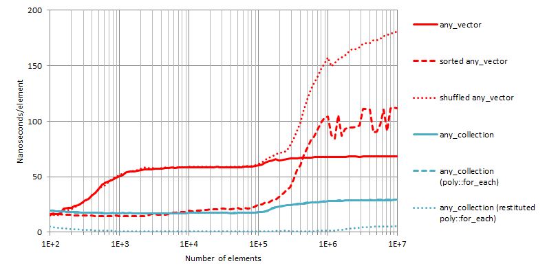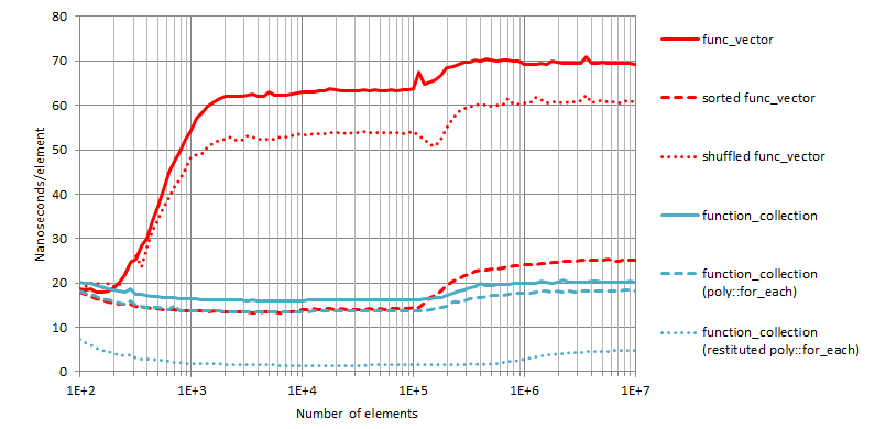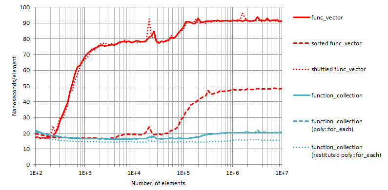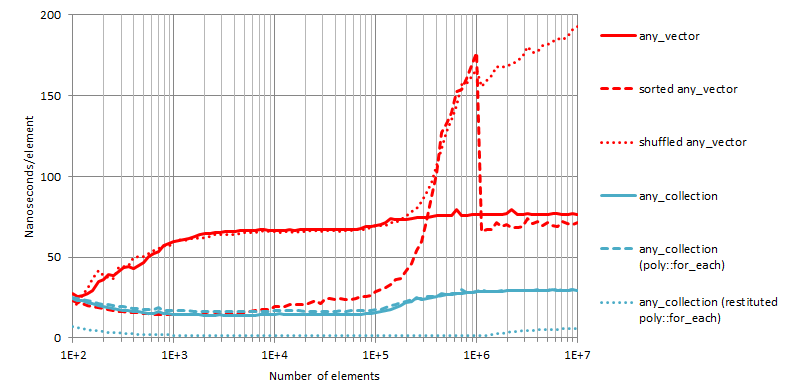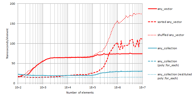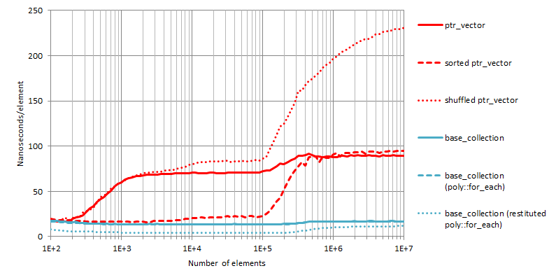 We ran tests to measure the performance of the containers of Boost.PolyCollection in two scenarios: